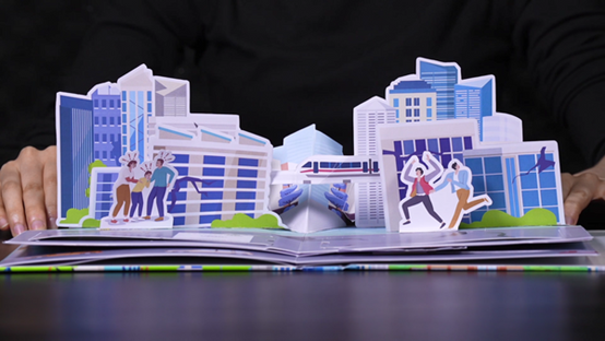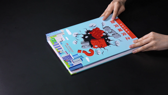 2022年防災減災日期間,選擇以災害風險中與百姓最為貼近的地震災害作為切入口,通過采用近些年成為科普新風尚的“互動立體書”的方式,擇取學校、社區、醫院等常見人員密集場所進行場景機關設計,對地震知識、地震避險知識、地震標準等相關內容進行拆解重組展示介紹。“動手閱讀”的立體書,將枯燥的科普知識轉變為引導式探索,賦予了閱讀趣味性,有效觸發目標受眾好奇心與閱讀探索欲。