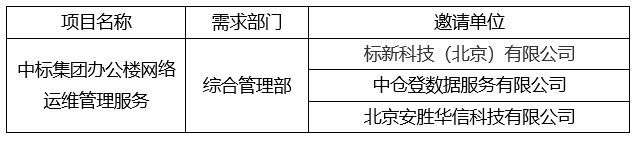 按照《中國標準科技集團有限公司采購工作管理辦法(試行)》要求,現對中標集團辦公樓網絡運維管理服務項目競爭性談判邀請單位公示。