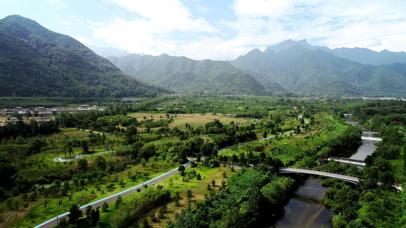 這是2019年7月26日拍攝的陜西省西安市長(zhǎng)安區(qū)秦嶺違建別墅拆除后建設(shè)的秦嶺和諧森林公園(無(wú)人機(jī)照片)。新華社記者 劉瀟 攝