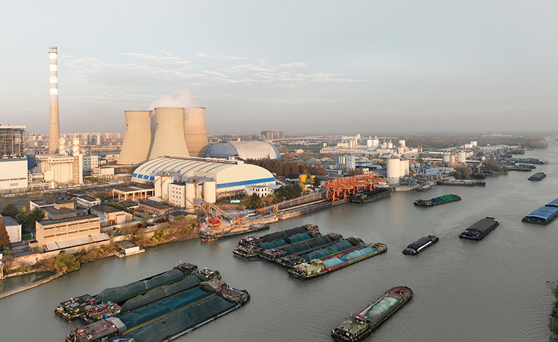 11月28日,運(yùn)輸電煤的船舶經(jīng)過(guò)京杭大運(yùn)河揚(yáng)州段(無(wú)人機(jī)照片)。