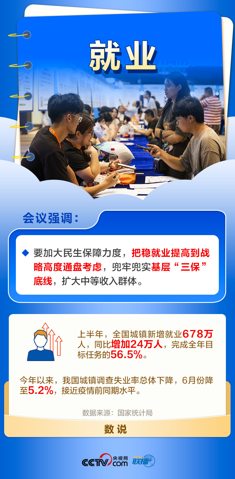 會議強調,要“用好政策空間、找準發力方向,扎實推動經濟高質量發展”“大力推動現代化產業體系建設”“通過增加居民收入擴大消費”“切實優化民營企業發展環境”“加大民生保障力度”等。其中,消費、住房、就業等工作部署事關你我,一起來了解。
